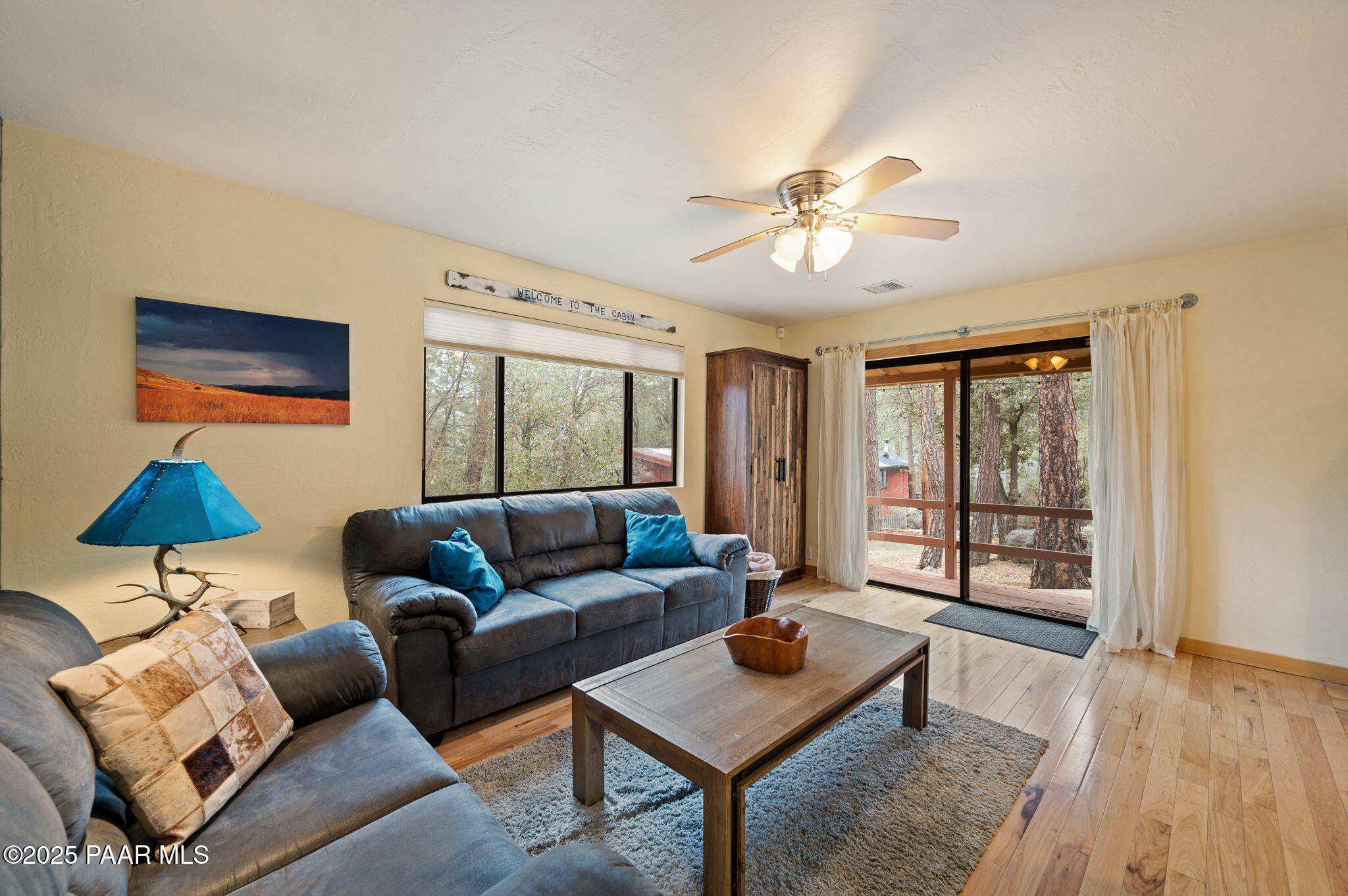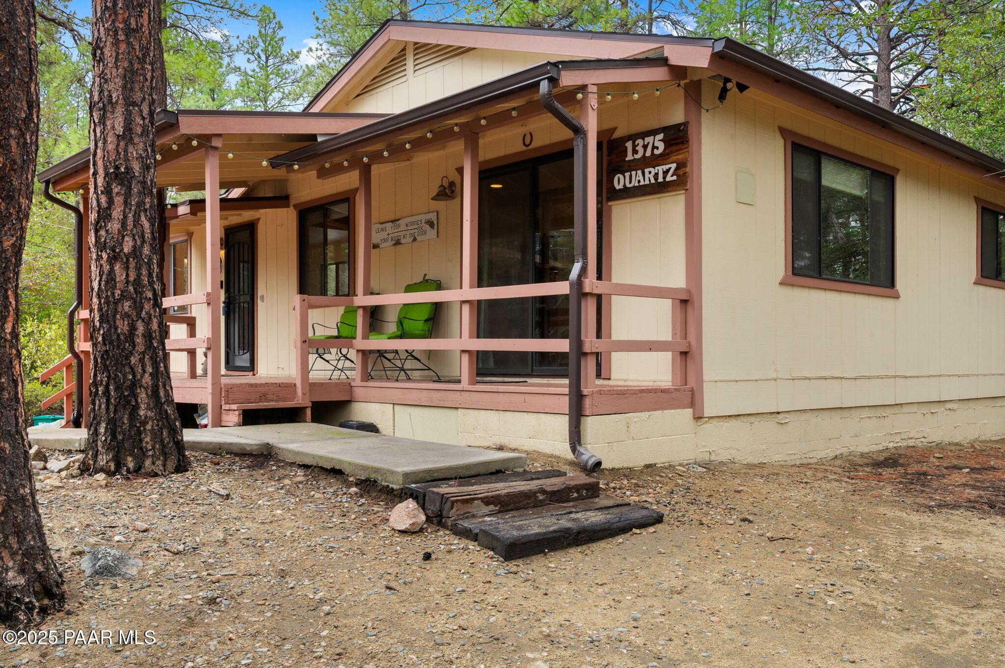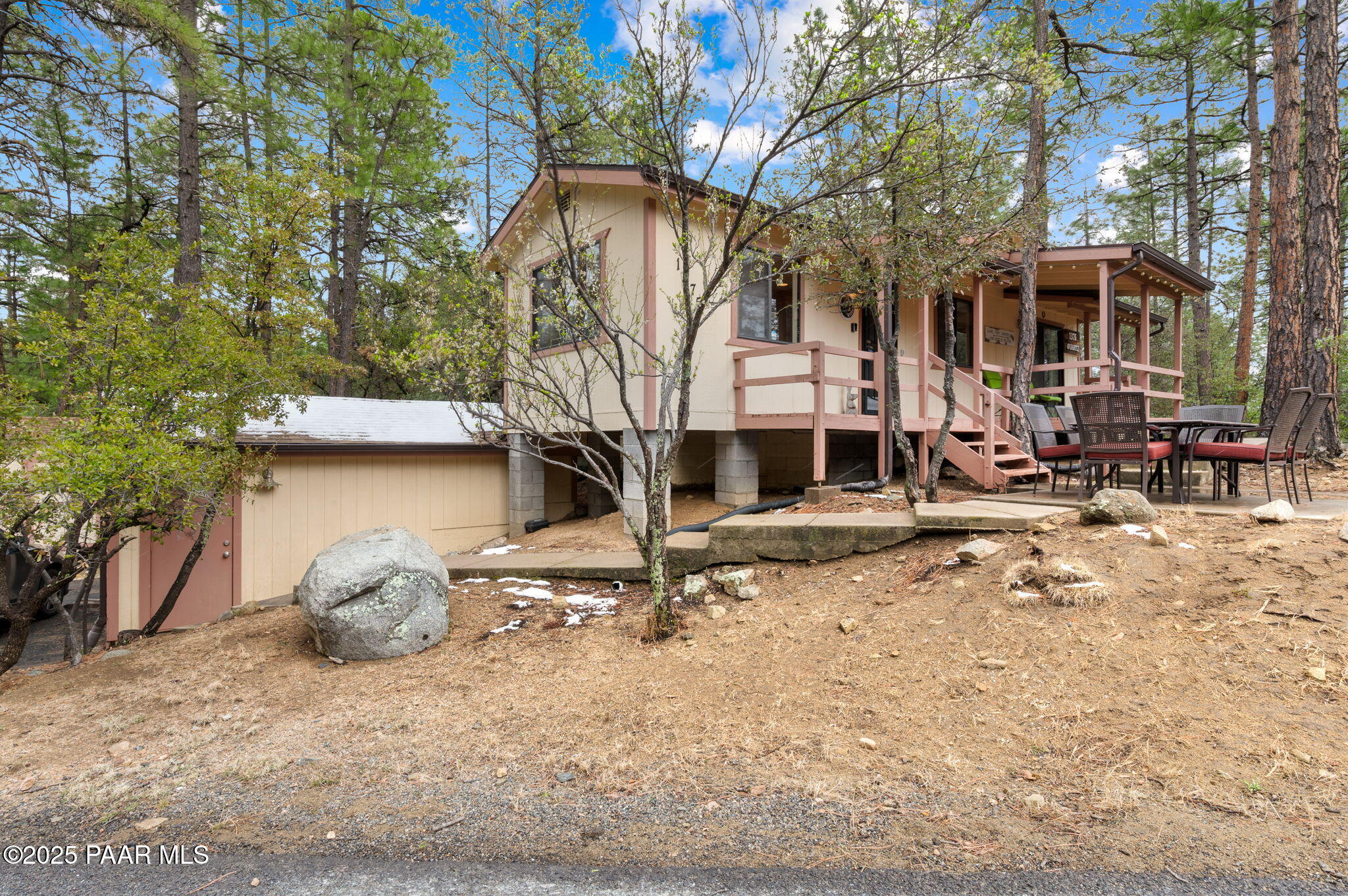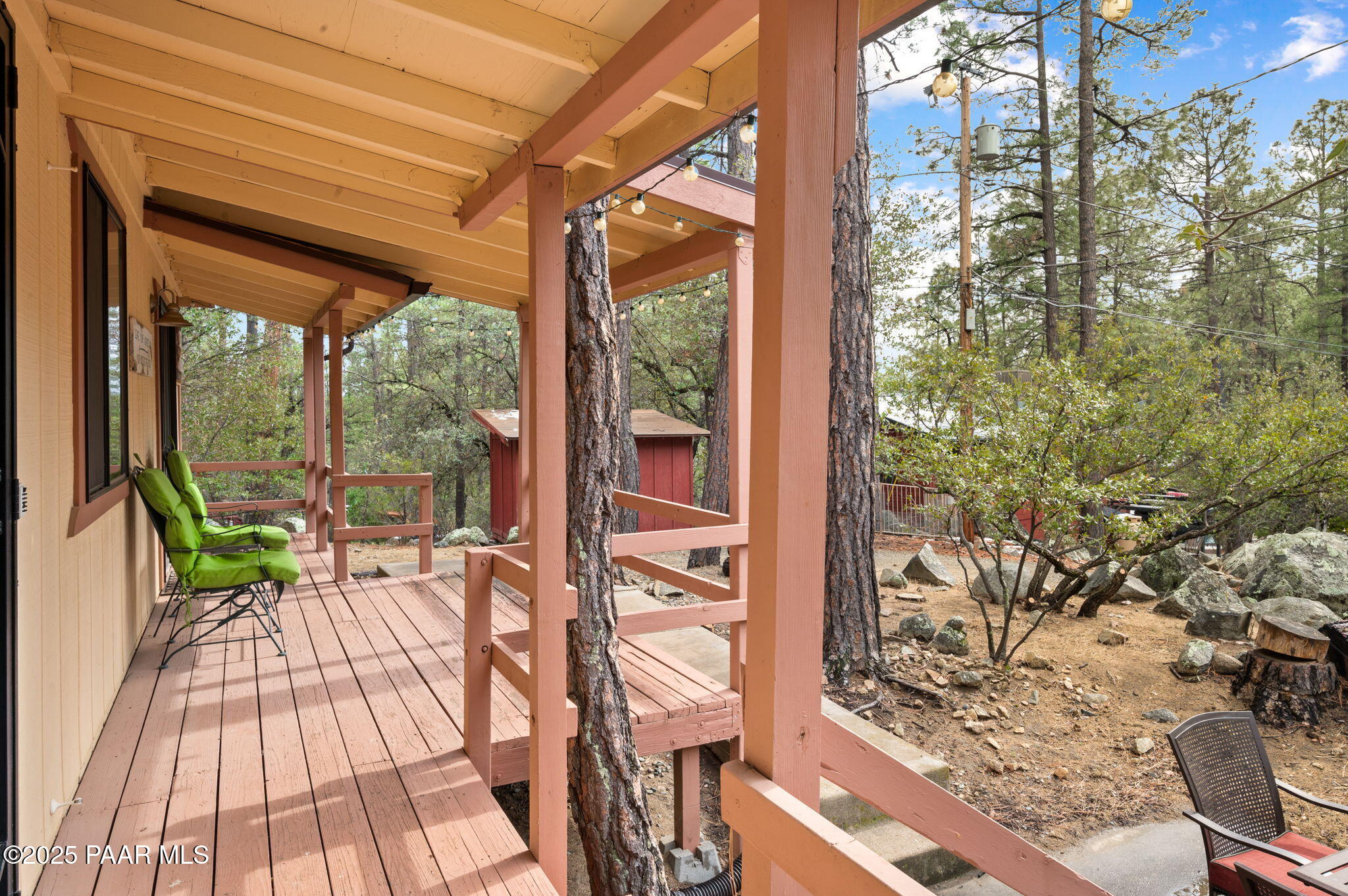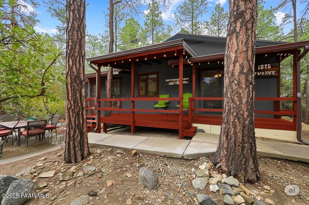 Escape to the pines with this beautifully remodeled 3-bedroom, 2-bathroom fully furnished cottage. Nestled in a tranquil location, you can step outside your front door and enjoy leisurely walks through the National Forest. Enjoy your outdoor activities with peace of mind with a Central Yavapai Fire Station located within this beautiful community!This cozy home boasts a custom kitchen with stunning wood tile and hickory floors, offering the perfect blend of rustic charm and modern conveniences. The spacious living areas provides ample room to relax and unwind, while the one-car garage--an uncommon find in this area--adds extra value, along with a detached storage building for all your needs. Whether you're searching for a vacation getaway, a full-time residence, or a rental property ,this home is ideal for all!. Located just 5.5 miles from Courthouse Square, you'll have quick access to shopping, dining, and local attractions, all without no hassle of an HOA. Recent upgrades include a brand-new hybrid water heater and a new main water line from the house to the street, ensuring efficiency and comfort. If you're looking for a peaceful retreat in the cool pines, this is the one you've been waiting for!