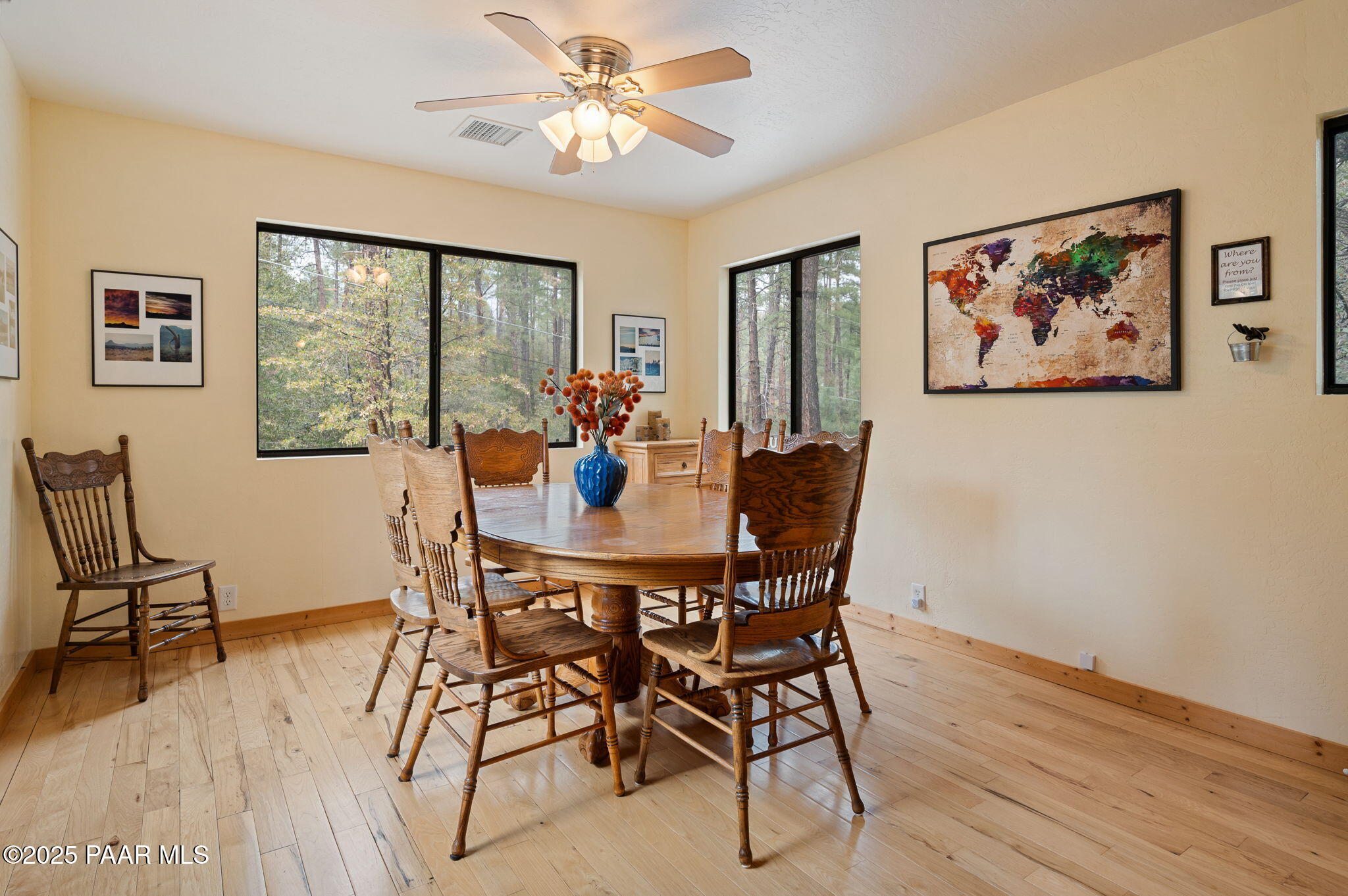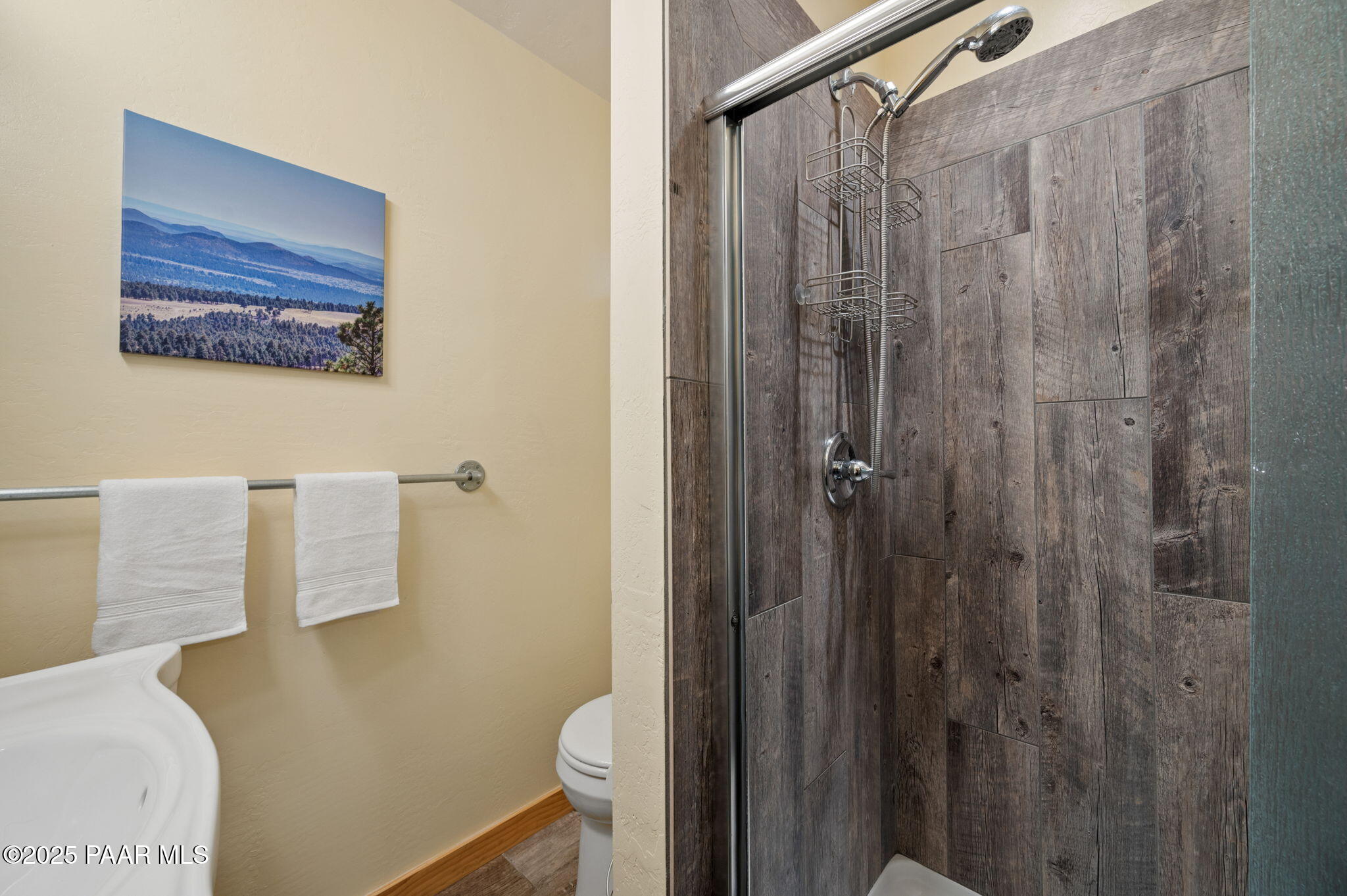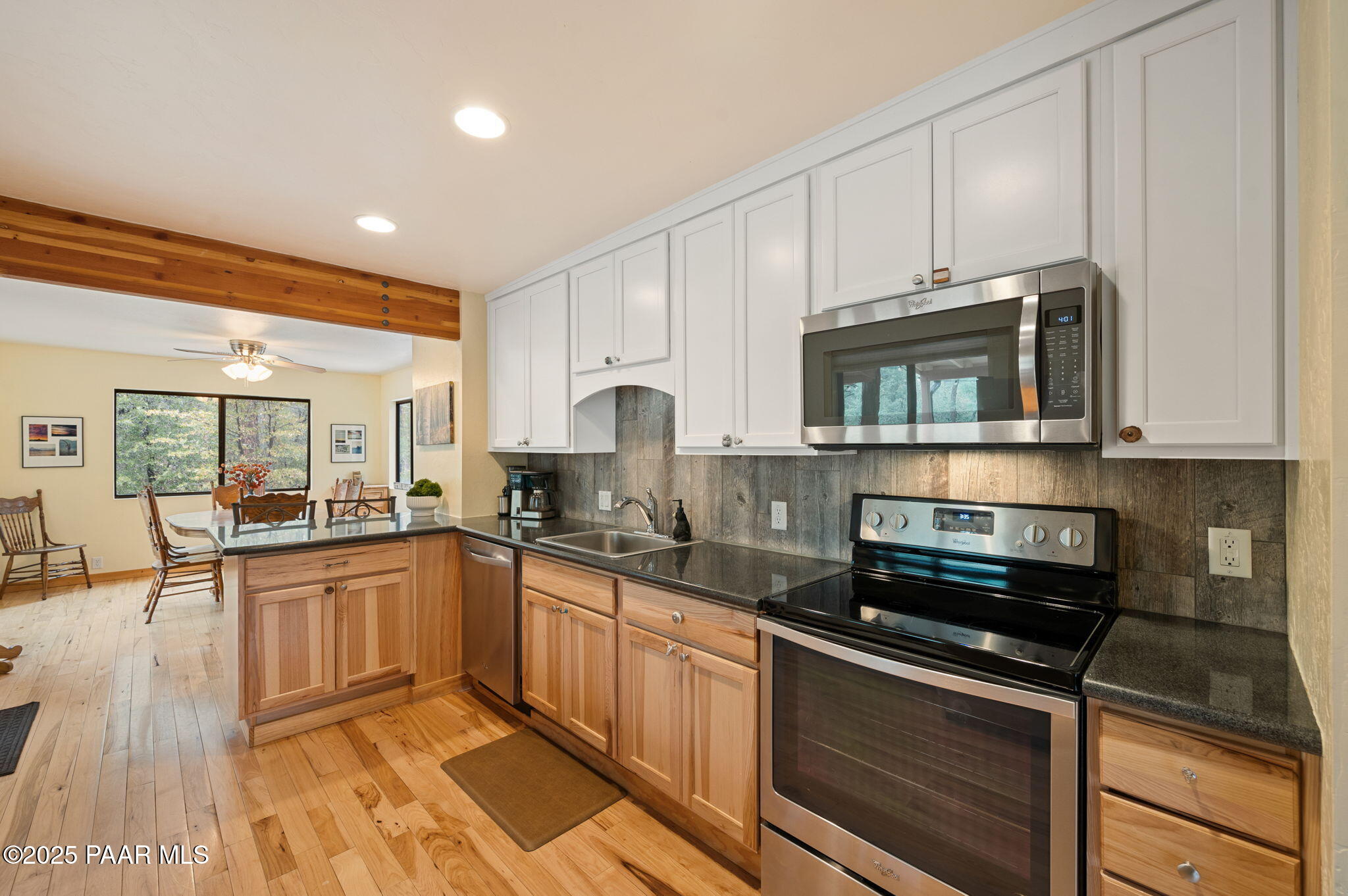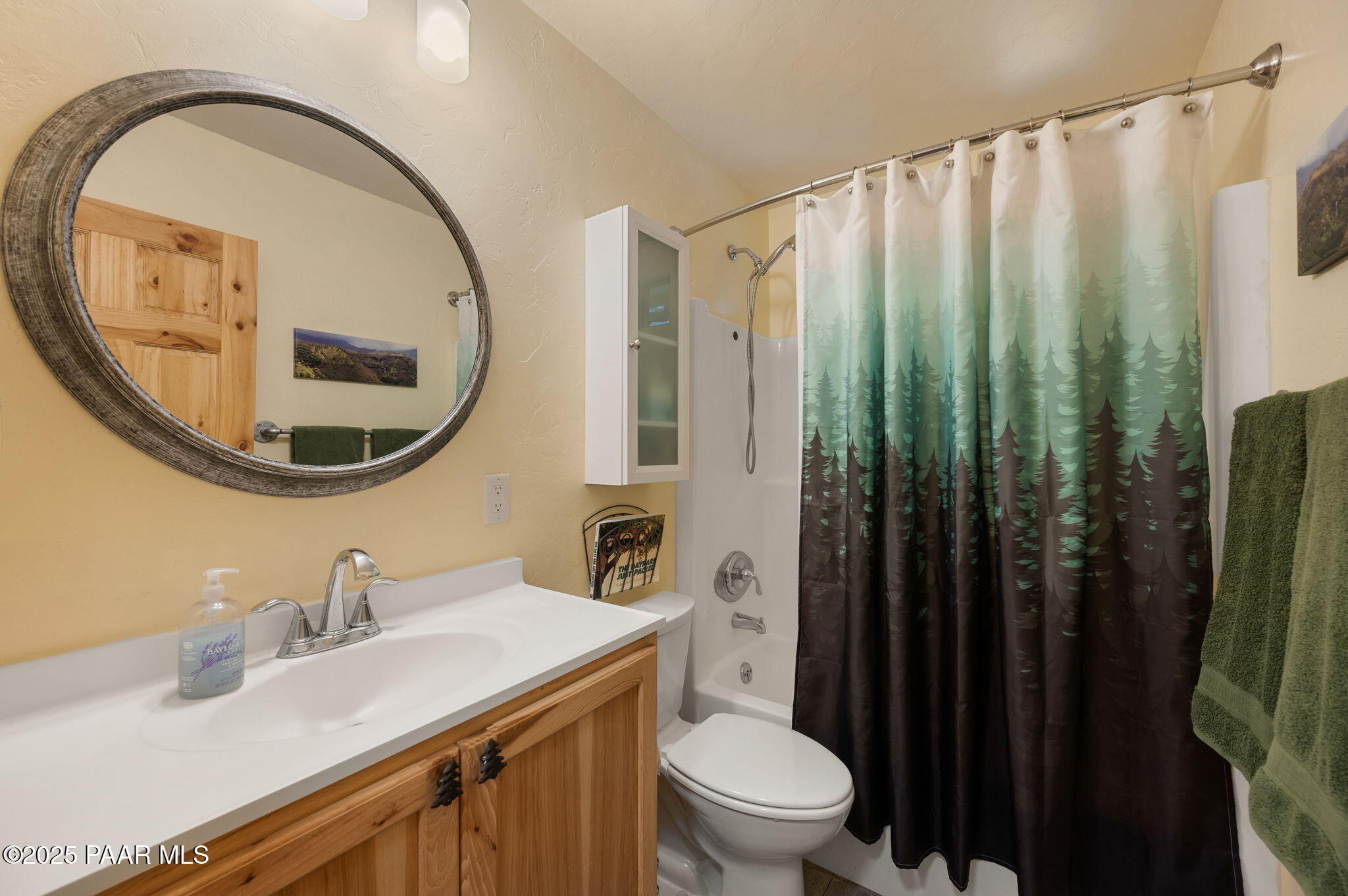 Escape to the pines with this beautifully remodeled 3-bedroom, 2-bathroom fully furnished cottage. Nestled in a tranquil location, you can step outside your front door and enjoy leisurely walks through the National Forest. Enjoy your outdoor activities with peace of mind with a Central Yavapai Fire Station located within this beautiful community!This cozy home boasts a custom kitchen with stunning wood tile and hickory floors, offering the perfect blend of rustic charm and modern conveniences. The spacious living areas provides ample room to relax and unwind, while the one-car garage--an uncommon find in this area--adds extra value, along with a detached storage building for all your needs. Whether you're searching for a vacation getaway, a full-time residence, or a rental property ,this home is ideal for all!. Located just 5.5 miles from Courthouse Square, you'll have quick access to shopping, dining, and local attractions, all without no hassle of an HOA. Recent upgrades include a brand-new hybrid water heater and a new main water line from the house to the street, ensuring efficiency and comfort. If you're looking for a peaceful retreat in the cool pines, this is the one you've been waiting for!