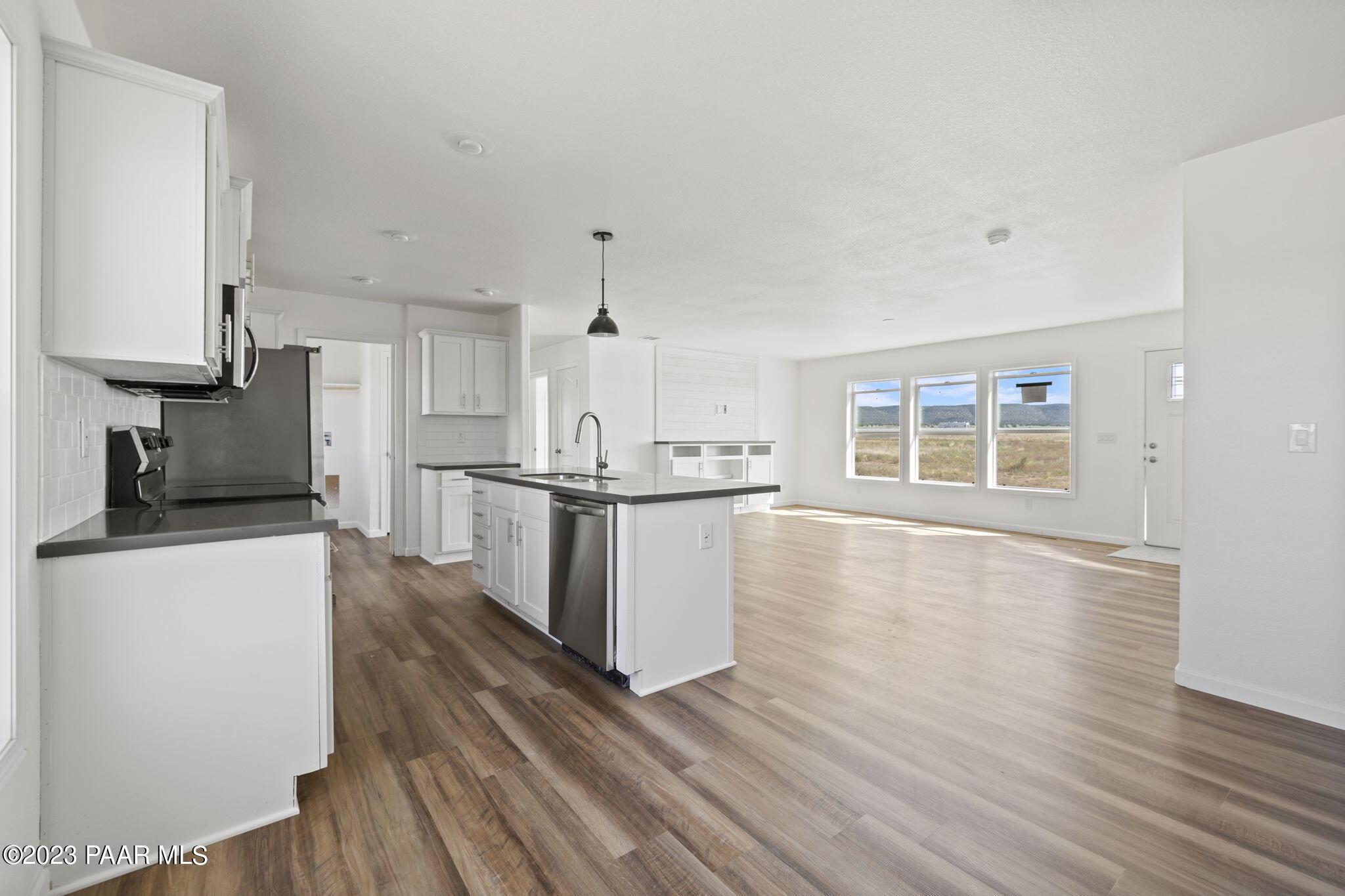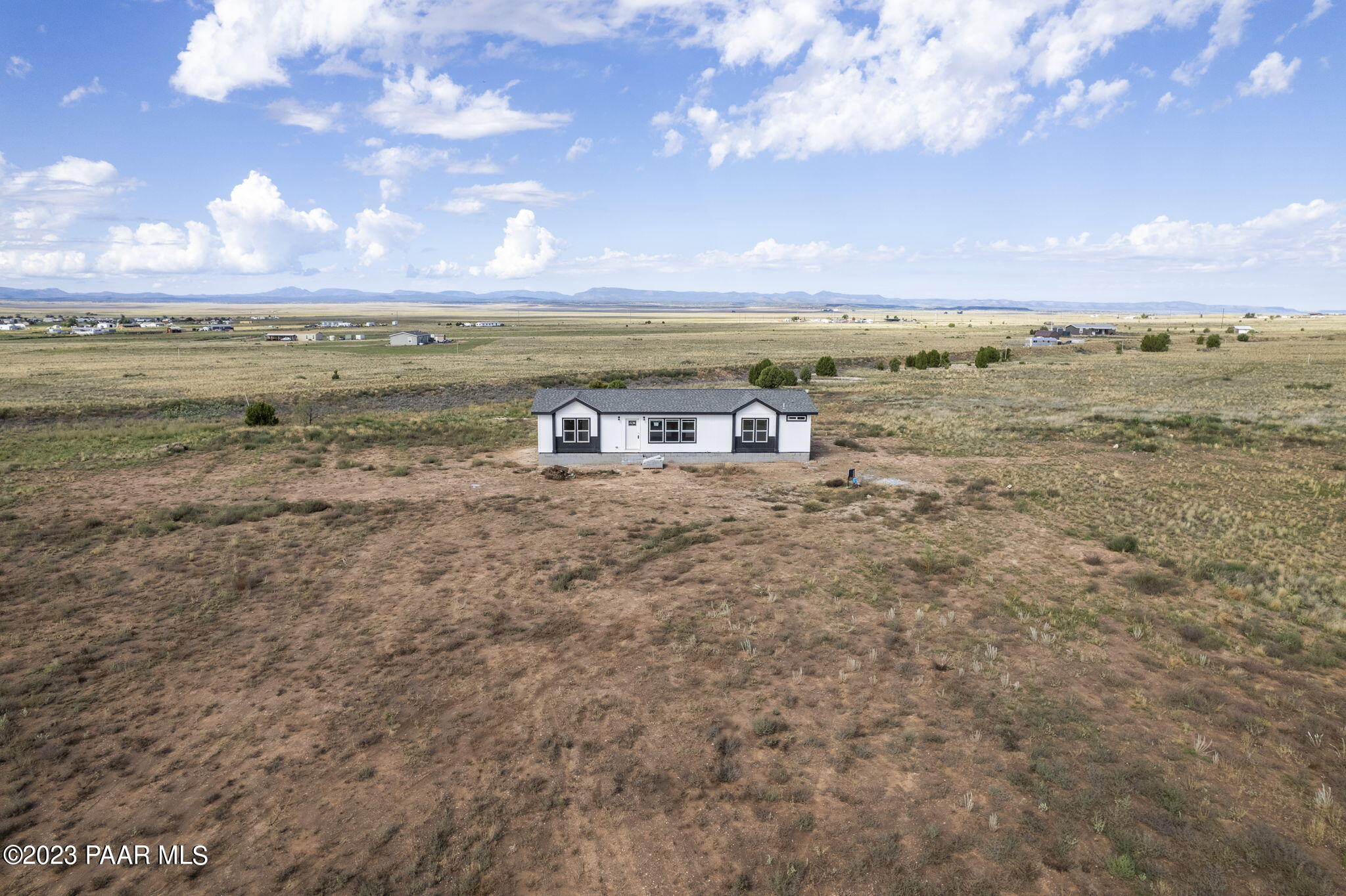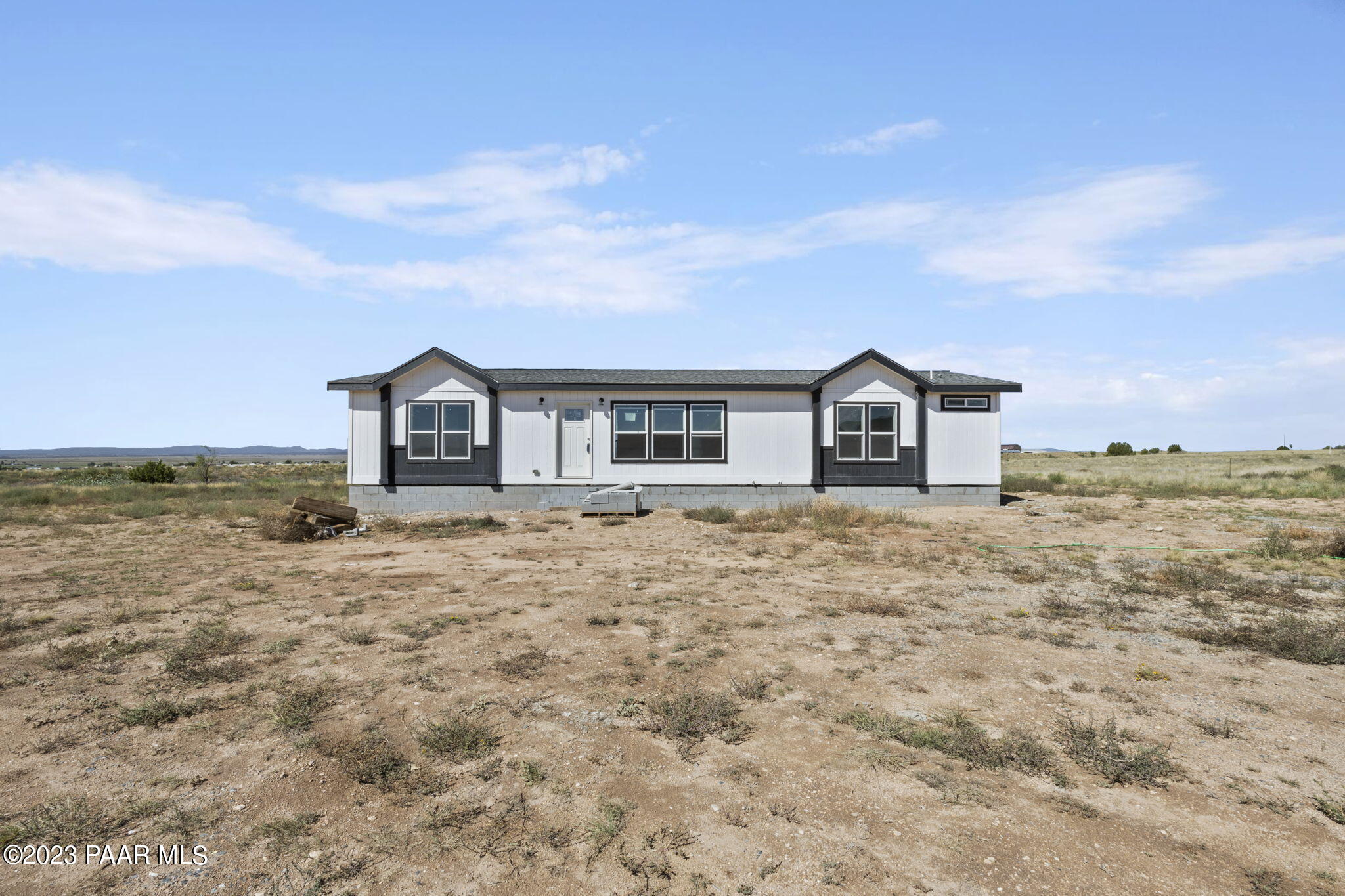 Welcome to your dream rural retreat in scenic Paulden! This brand new, custom-built 2023 manufactured home is the epitome of modern comfort and convenience. Sitting on 2.18 acres with three spacious bedrooms and three baths, this stunning residence spans over 1,566 square feet, offering ample space for your family to spread out and relax. Step inside and be instantly captivated by the open and airy ambiance of the home. The thoughtfully designed floor plan seamlessly connects the living, dining, and kitchen areas, making it perfect for entertaining guests or spending quality time with loved ones. The large windows flood the interiors with natural light, creating a warm and inviting atmosphere throughout. The gourmet kitchen is a culinary enthusiast's haven, boasting top-of-the-line stainless steel appliances, sleek quartz countertops, subway tile backsplash and plenty of storage space. Meal preparation is made easy, ensuring you can whip up memorable feasts for years to come. The adjacent dining area is ideal for enjoying family meals or hosting intimate dinner parties. The primary master suite is a tranquil oasis, featuring a luxurious en-suite bathroom and a generous walk-in closet. With its serene color palette and plush carpeting, this space encourages relaxation and rejuvenation. The second master bedroom, complete with an attached bathroom, is perfect for guests or extended family members seeking privacy and comfort. There is also a third bedroom and bath to service guests. Outside, you will discover the beauty of the surrounding rural landscape. Enjoy breathtaking views and tranquility as you unwind on your gorgeous land, sip your morning coffee, or bask in the evening sunsets. The property also features a private well that produces an impressive 15 gallons per minute, ensuring you have an uninterrupted supply of water. Located in the peaceful community of Paulden, this home offers a unique opportunity to experience rural living without sacrificing modern amenities. Escape the hustle and bustle of city life and indulge in the serenity of your very own oasis. Don't miss this chance to make this impeccable manufactured home yours and start living the country dream you've always envisioned. Schedule your private showing today!