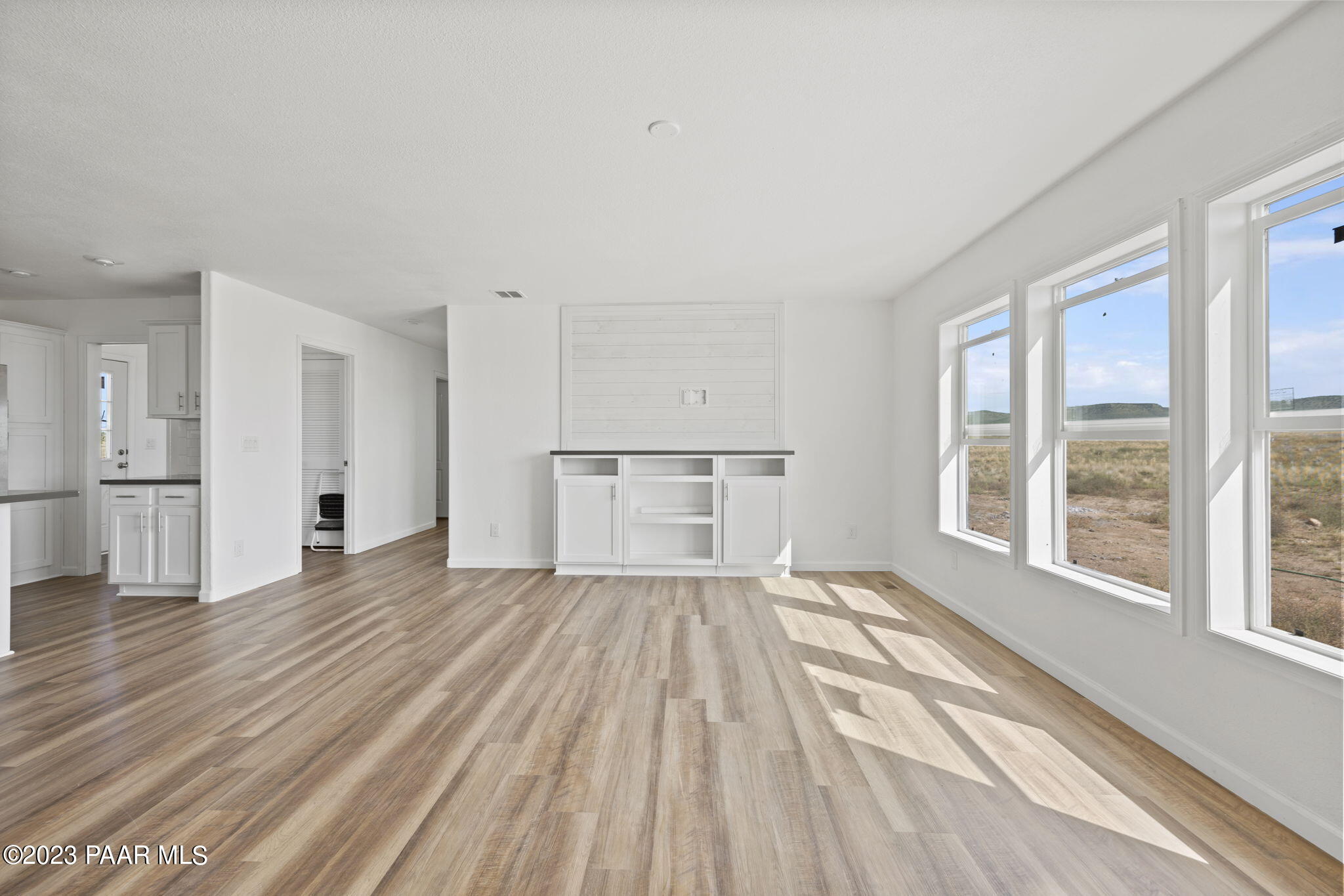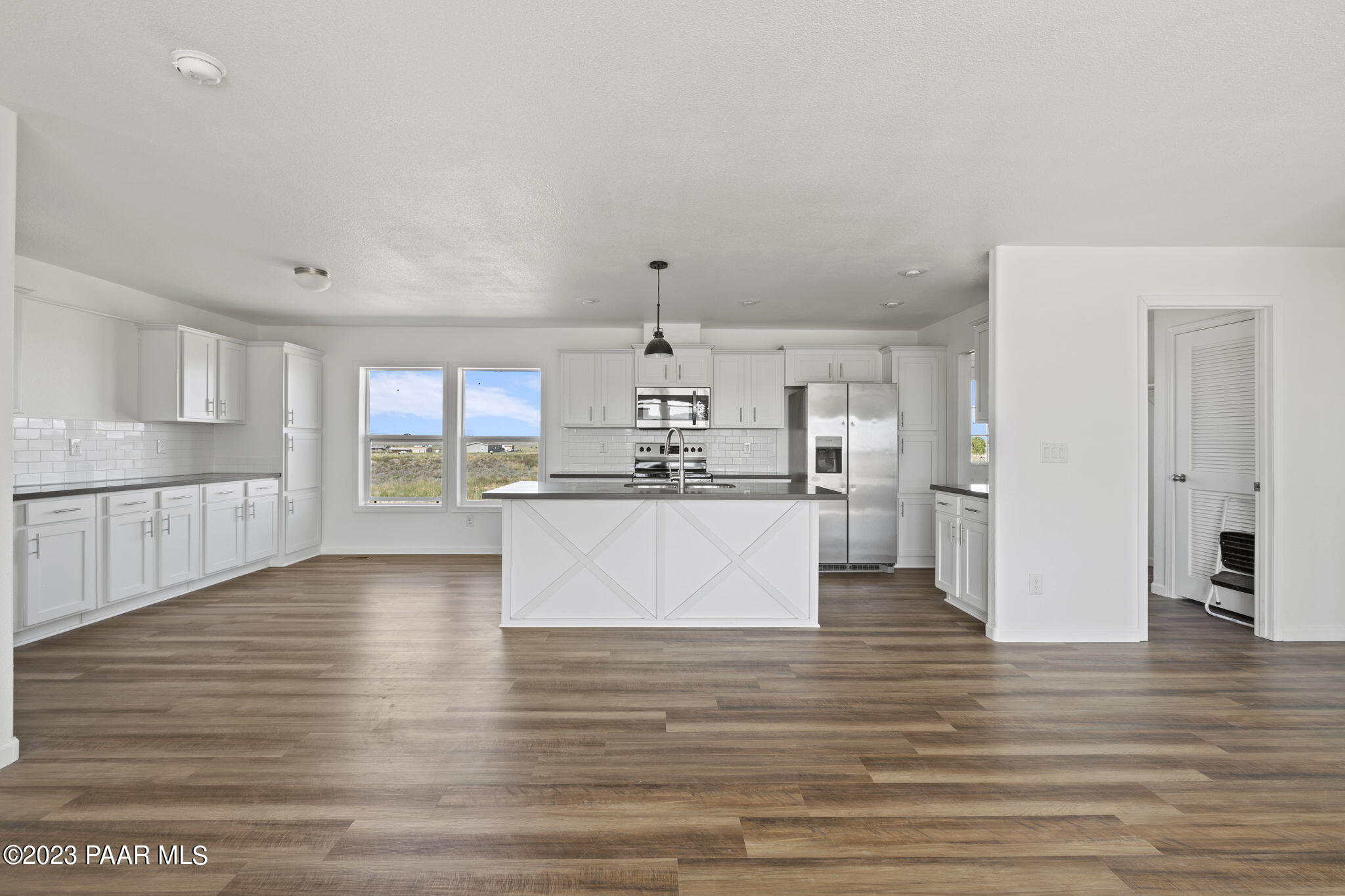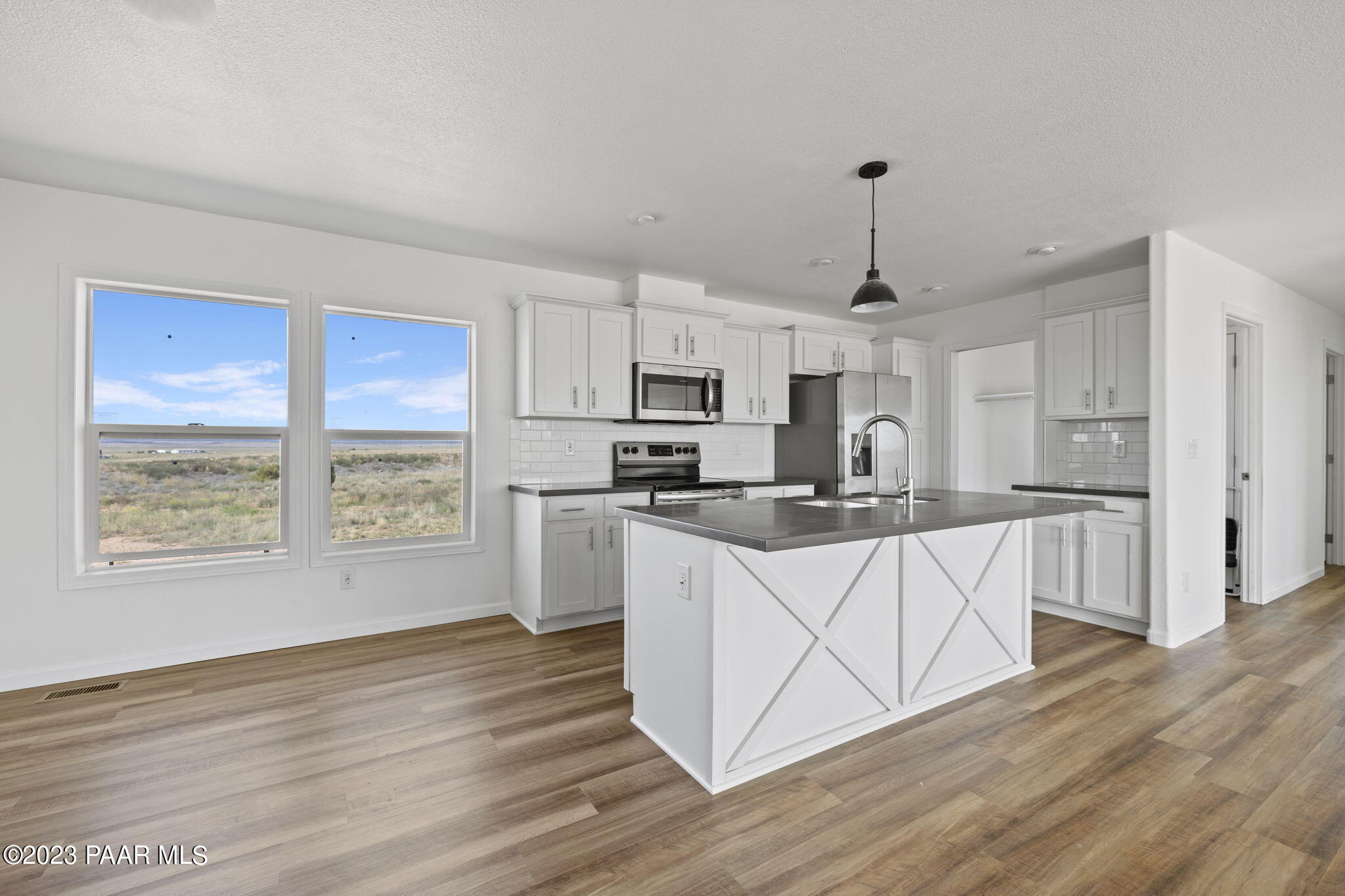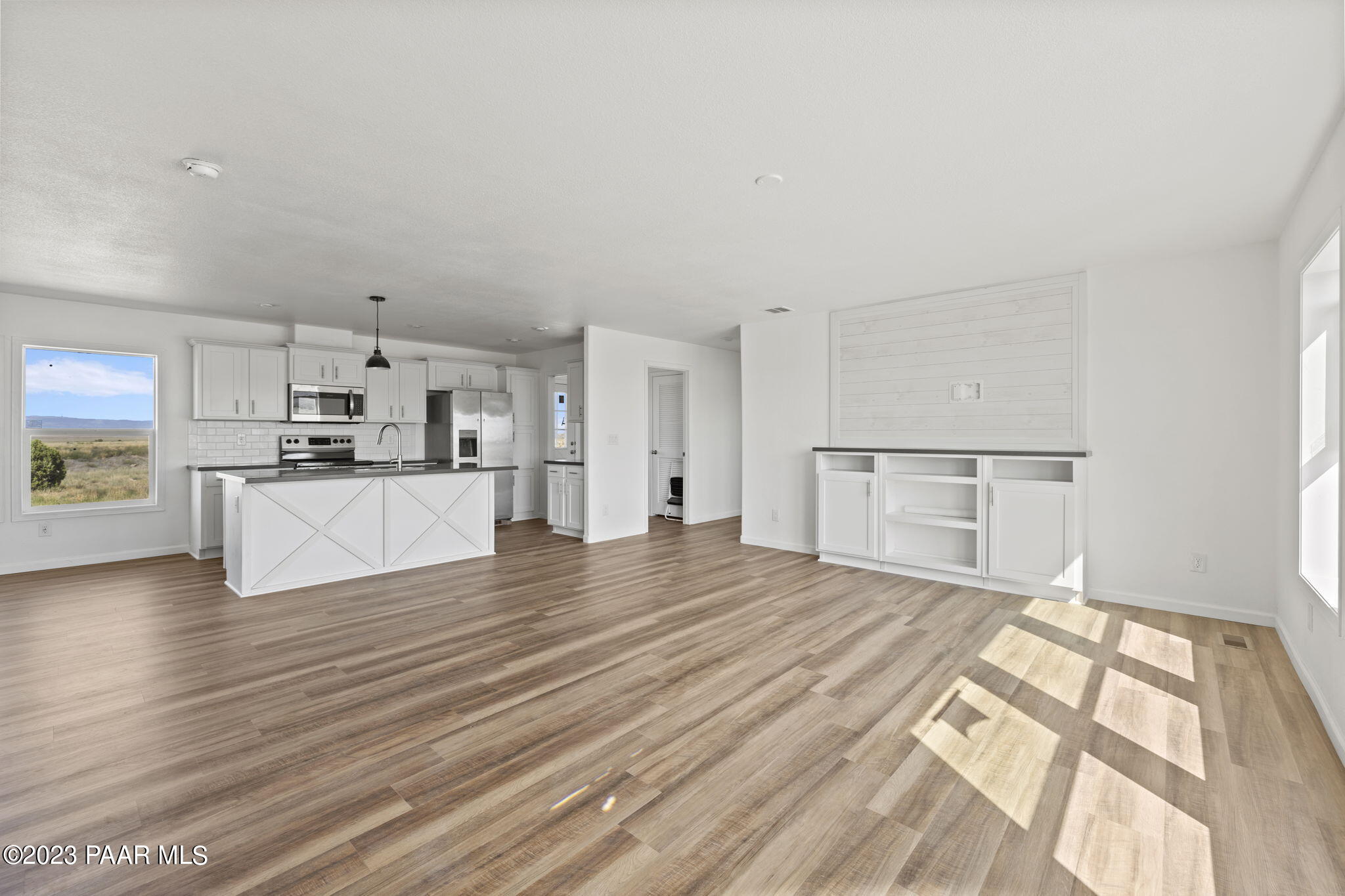 Welcome to your dream rural retreat in scenic Paulden! This brand new, custom-built 2023 manufactured home is the epitome of modern comfort and convenience. Sitting on 2.18 acres with three spacious bedrooms and three baths, this stunning residence spans over 1,566 square feet, offering ample space for your family to spread out and relax. Step inside and be instantly captivated by the open and airy ambiance of the home. The thoughtfully designed floor plan seamlessly connects the living, dining, and kitchen areas, making it perfect for entertaining guests or spending quality time with loved ones. The large windows flood the interiors with natural light, creating a warm and inviting atmosphere throughout. The gourmet kitchen is a culinary enthusiast's haven, boasting top-of-the-line stainless steel appliances, sleek quartz countertops, subway tile backsplash and plenty of storage space. Meal preparation is made easy, ensuring you can whip up memorable feasts for years to come. The adjacent dining area is ideal for enjoying family meals or hosting intimate dinner parties. The primary master suite is a tranquil oasis, featuring a luxurious en-suite bathroom and a generous walk-in closet. With its serene color palette and plush carpeting, this space encourages relaxation and rejuvenation. The second master bedroom, complete with an attached bathroom, is perfect for guests or extended family members seeking privacy and comfort. There is also a third bedroom and bath to service guests. Outside, you will discover the beauty of the surrounding rural landscape. Enjoy breathtaking views and tranquility as you unwind on your gorgeous land, sip your morning coffee, or bask in the evening sunsets. The property also features a private well that produces an impressive 15 gallons per minute, ensuring you have an uninterrupted supply of water. Located in the peaceful community of Paulden, this home offers a unique opportunity to experience rural living without sacrificing modern amenities. Escape the hustle and bustle of city life and indulge in the serenity of your very own oasis. Don't miss this chance to make this impeccable manufactured home yours and start living the country dream you've always envisioned. Schedule your private showing today!