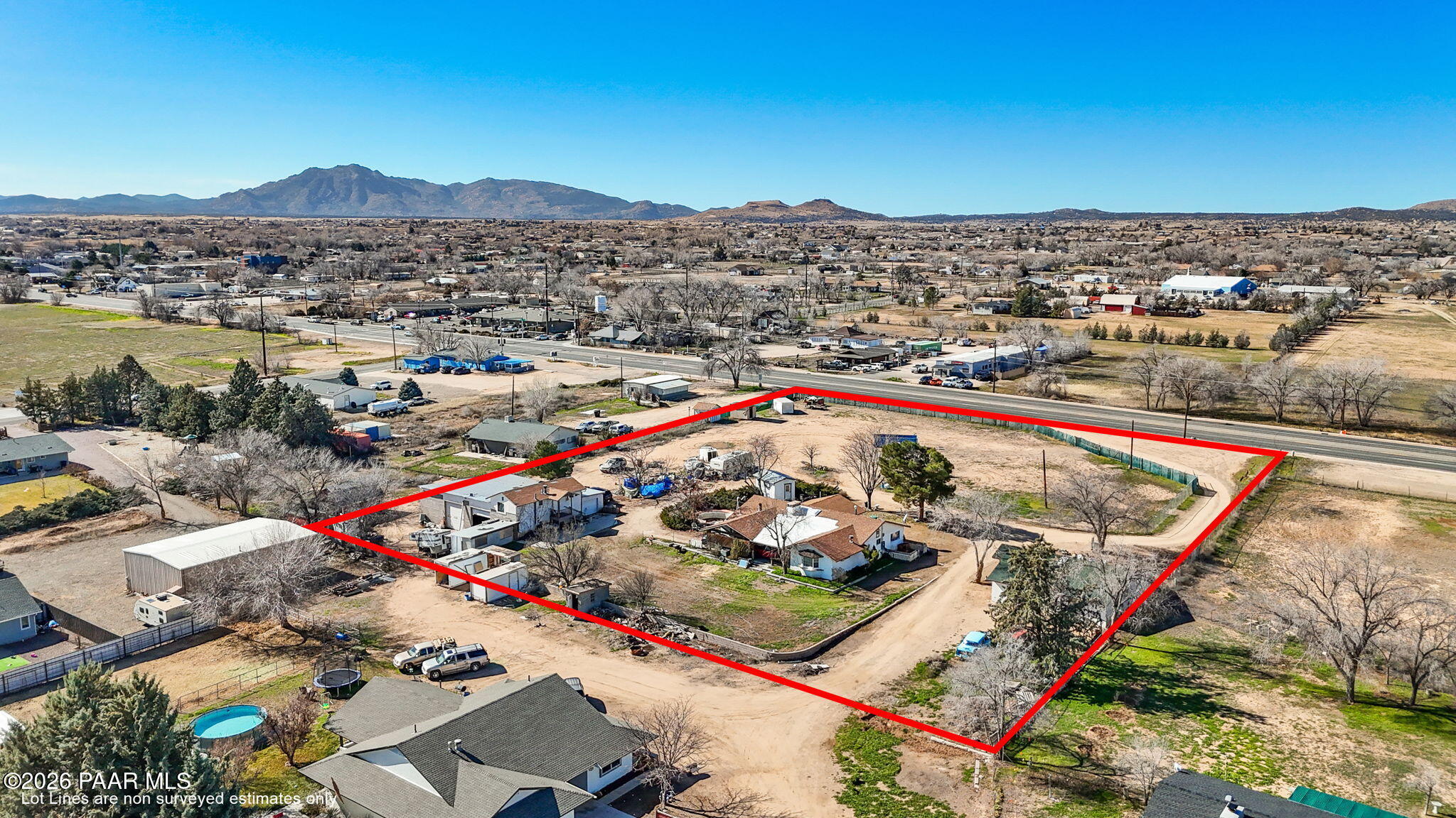Unique live/work investment opportunity on 2.63 acres in the heart of Chino Valley. Zoned commercial and offering multiple income and use possibilities, this versatile property is ideal for investors, entrepreneurs, or owner-users seeking flexibility. The site includes a 4-bedroom, 2-bath main residence, a separate 2-bedroom, 1-bath guest house, and a 1-bedroom, 1-bath apartment located above a large garage/workshop. The workshop features two oversized roll-up doors, making it well-suited for equipment storage, trades, or business operations. A small pool adds additional appeal for residential or short-term use. The property is serviced by a private well and septic, reducing operating costs and increasing long-term value. Centrally located with excellent access while maintaining space and privacy, this is a rare opportunity to operate a business, generate rental income, or create a multi-stream investment from one property.